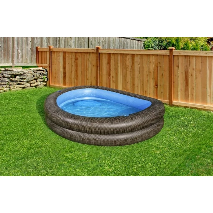 Un design atypique rotin, 2 sièges et quelques dizaines de centimètre d’eau, c’est la recette de la piscinette Demi-Lune Bestway !