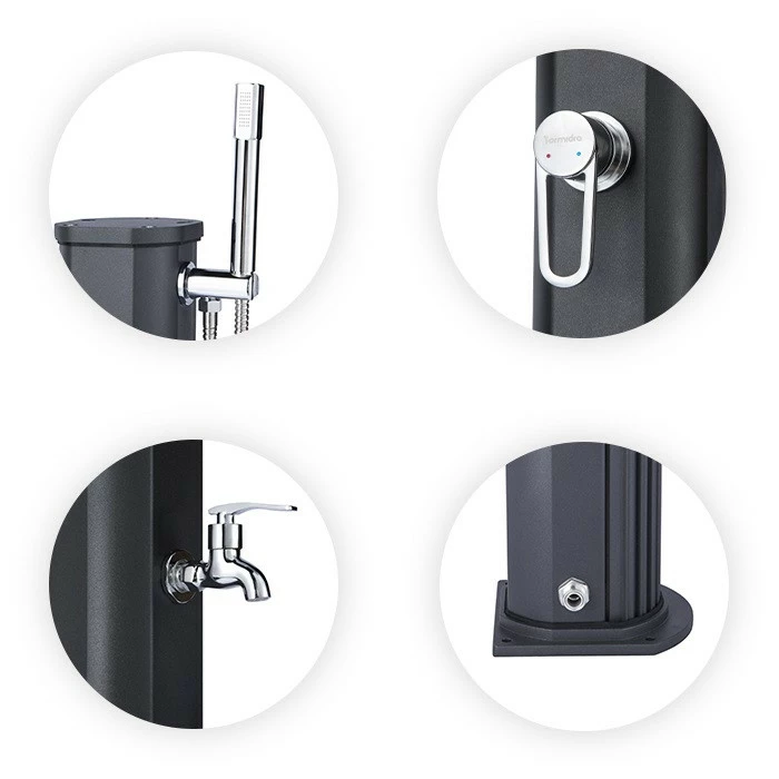 Cette douche sera parfaite pour compléter votre piscine et vous permettra de vous rincer à l’eau chauffée naturellement et donc respectueuse de l’environnement.