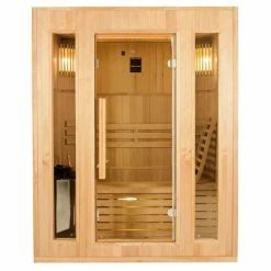 Ces pierres Ø 10-15 cm sont sélectionnées dans le respect de la tradition du sauna. Les pierres sont éclatées pour obtenir une surface large. Cette surface facilite l’évaporation de l’eau et permet de donner une chaleur douce et intense à la vapeur.