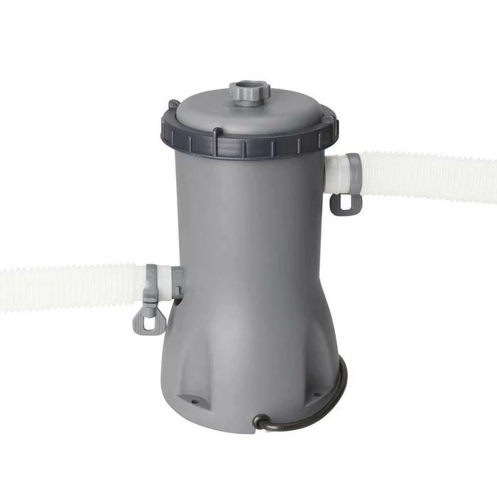 Pratique et complet, ce kit est composé d’une pompe de filtration (débit de 3,028L/h) à cartouche (II) qui assurera au bassin de conserver une eau propre et claire.