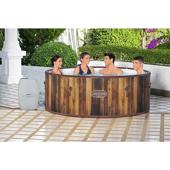 Le spa Helsinki se démarque des autres spas gonflables du marché par son apparence imitation bois et ses contours fins.