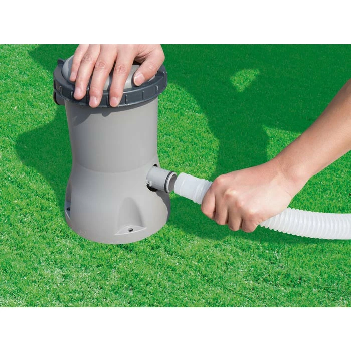 Il s’associera parfaitement avec une pompe de filtration d’une puissance maximale de 9,462 m3/h (2.500 gal./h) et avec un filtre à sable d’une capacité inférieure ou égale à 7.570 L/h (2.000 gal./h).