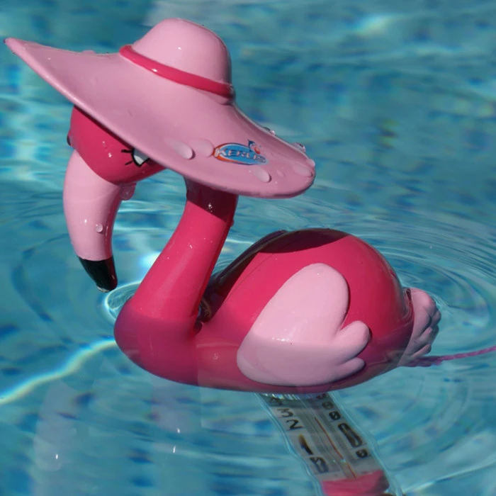 Ce thermomètre Kerlis flamant rose flottera de façon très élégante dans votre piscine pour vous donner la température de l’eau.